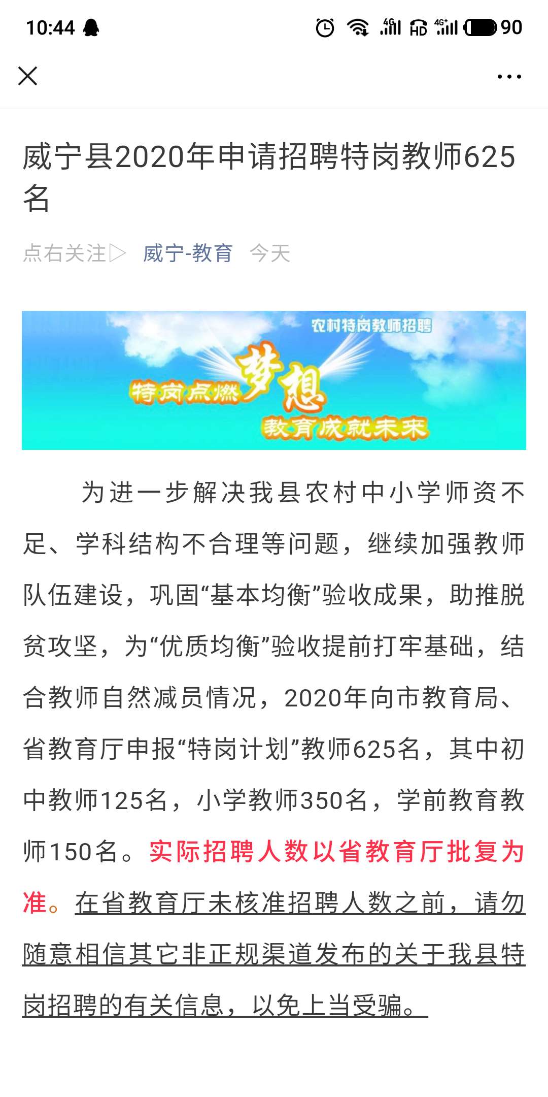 貴州省威寧縣2020年申請招聘特崗教師625名