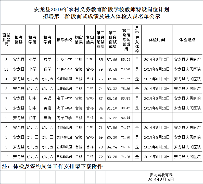 安龍縣2019特崗招聘第二階段面試成績(jī)及進(jìn)入體檢人員名單公示