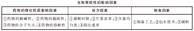 生物等效性的影響因素,見(jiàn)下表。