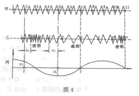 波形特點:疏密相間的波形,又叫疏密波。如圖4波形所示。