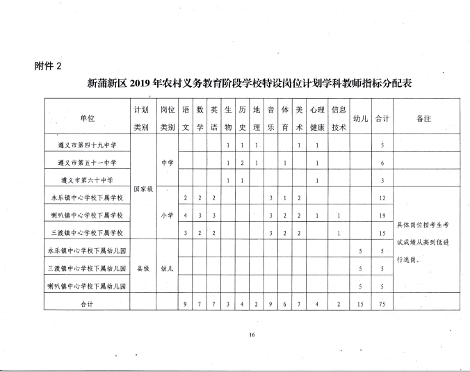 新蒲新區(qū)2019年農(nóng)村義務(wù)教育階段學(xué)校教師特設(shè)崗位計(jì)劃教師崗位分配表