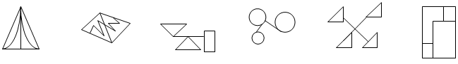 例題:把下面的六個圖形分為兩類,使每一類圖形都有各自的共同特征或規(guī)律,分類正確的一項是: