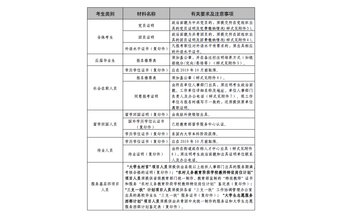 考生需在面試候考時(shí)提交下列材料。其中,材料要求為復(fù)印件的,須現(xiàn)場出示原件,復(fù)印件上由本人親筆簽字。請確保材料真實(shí)可靠,如發(fā)現(xiàn)提供虛假信息或隱瞞有關(guān)情況,將取消考生錄用資格。具體材料如下: